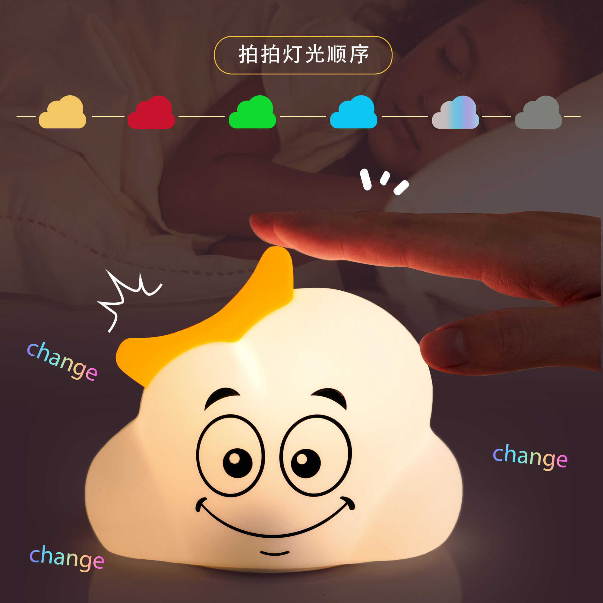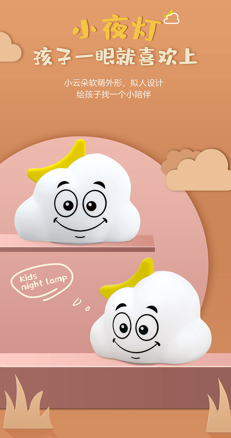 云朵硅膠小夜燈 兒童玩具臥室氛圍燈 網(wǎng)紅生日禮物床頭伴睡拍拍燈